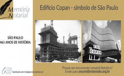 A escritura também detalha andar por andar, desde o pavimento térreo até cada um dos apartamentos, além de especificar os encargos comuns, como gastos necessários à manutenção do edifício e seguro contra “fogo, raio e suas consequências”. O projeto original foi uma encomenda da Companhia Pan-americana de Hotéis e compreendia um edifício residencial de 30 andares e outro que abrigaria um hotel com pelo menos 600 apartamentos. Ambos os prédios seriam interligados por uma marquise no térreo, porém, apenas o residencial foi construído. A obra do prédio construído ficou a cargo da Companhia Nacional da Indústria da Construção e foi iniciada em 1952. Somente no ano seguinte foi obtido o alvará de construção. Detalha o documento: “Nos terrenos objeto desta, foi destacada uma área de 6.248,85m2, mais ou menos, formando um só todo, assim descrito: partindo de um ponto situado no alinhamento da Av. Ipiranga, a 19,50m. da confluência desta avenida, com a área Araújo, segue até a citada esquina; daí acompanhando o alinhamento da rua Araújo, estendendo-se por 58,40m. desse ponto, com deflexão à esquerda, segue mais ou menos perpendicularmente ao alinhamento daquela rua, em direção aos fundos, numa extensão de 13,85m. nesse ponto sofre uma deflexão à esquerda, de aproximadamente 15º seguindo nessa direção, por 6,58m. daí com deflexão à direita, aproximadamente 12º 30’, segue por mais 7,27m. sempre em direção aos fundos, nesse ponto, sofre uma deflexão à direita de aproximadamente 90º, seguindo nessa direção 1,05m., sofre uma deflexão à esquerda de aproximadamente 86º, 30’, seguindo por 8,20m. nessa nova direção; nesse ponto, apresenta deflexão à esquerda de aproximadamente 95º, seguindo na nova direção, por uma extensão de 36,40m., nesse ponto, após uma deflexão a direita de aproximadamente 90º, segue numa extensão de 7,95m. nesse ponto, após uma deflexão à direita, de aproximadamente 5º, segue numa extensão de 30,10m., desse ponto, com deflexão à esquerda de 34º aproximadamente, segue por 32,15m. nesse ponto, concorda com uma curva circular à direita, de 8,00m. de extensão, com raio de 10,20m. e ângulo central de 45º nesse ponto, entra em concordância com outra curva circular à esquerda, e 4,83m. de extensão, raio de 12,30m., em ângulo central de 22º, 30’., concorda então com outra curva circular à esquerda de 7,91m. de extensão, com raio de 8,40m. e ângulo de 54º, segue depois na direção da tangente, em linha reta, numa extensão de 23,30m. entretanto, então, em concordância com uma curva circular à direita de 12,26m. de extensão, raio de 37,00m. e ângulo central de 19º, nesse ponto, concorda com outra curva à direita de 12,00m. de extensão, de raio de 18,60m. e 37º de ângulo central, segue então na direção da tangente, numa extensão de 22,20m. em linha reta, até encontrar uma curva circular à direita, por onde segue numa extensão de 18,33m. daí, em direção da tangente se prolonga numa extensão de 8,80m. até encontrar o ponto de partida, na Av. Ipiranga”. “Nesse terreno, foi construído um prédio, que recebeu os nsº 200, 202, 210, 216 e 220 da Av. Ipiranga e 293, 321, 323, 329, 335 da rua Araújo; e 4) denominado EDIFÍCIO COPAN, o qual foi submetido ao regime de condomínio, nos termos da Lei 5481 de 25 de junho de 1.928, regulamentada pelo Decreto 55.815/65. A Convenção de Condomínio, foi registrada no Livro Oito de Registro Especial, sob nº 365”. Possui um documento notarial histórico? Envie para ascom@notariado.org.br. | ||