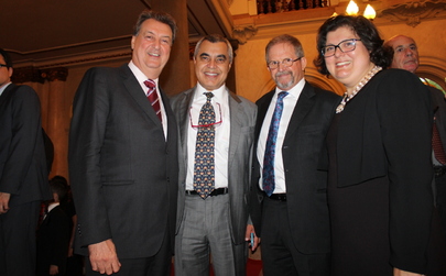 O concerto foi realizado no Theatro Municipal de São Paulo e contou com a presença de diversas autoridades, entre elas o prefeito da cidade, Fernando Haddad. O motivo da comemoração foi o “Dia da Justiça” (8 de dezembro). Na ocasião, o presidente do TJ-SP, José Renato Nalini relembrou o início de sua gestão. “Iniciamos a gestão 2014/2015 com música: o concerto na Sala São Paulo. Agora a encerramos também com música. Nesse espaço temporal tentamos todos juntos produzir musicalidade na Justiça. Perseguir a harmonia mediante atenuação, rumo à utópica eliminação das dissonâncias resultantes do convívio”, disse. Nalini aproveitou para agradecer a parceria das entidades extrajudiciais tanto neste evento quanto em outras questões. Também discursou o presidente eleito para a gestão 2016/2017 do TJ-SP, Paulo Dimas de Bellis Mascaretti, que parabenizou seu antecessor. “É bonita a vida de um grande magistrado como Nalini, que nos últimos quatros anos – como corregedor e presidente do TJ-SP – se dedicou como ninguém à causa da Justiça”, destacou. Um vídeo com os momentos mais importantes da gestão Nalini na presidência do TJ-SP foi exibido antes da apresentação da obra “Missa de Alcaçus”, que mistura o erudito e o popular, do compositor Danilo Guanais. A peça foi executada pelo Coral Paulistano Mário de Andrade e pela Camerata Paulista, sob a regência de Martinho Lutero Galati de Oliveira. Os solistas coroaram o concerto: Lulinha Alencar (sanfona), Azael Rodrigues (bateria), Caio Ferragini (percussão) e João Francisco Botosso (violão). A ANOREG/SP esteve representada por seu presidente, Leonardo Munari de Lima, seus diretores, Carlos Fernando Brasil Chaves, José Carlos Alves, Karine Maria Famer Rocha Boselli, entre outros notários e registradores. Fonte: ANOREG/SP | ||